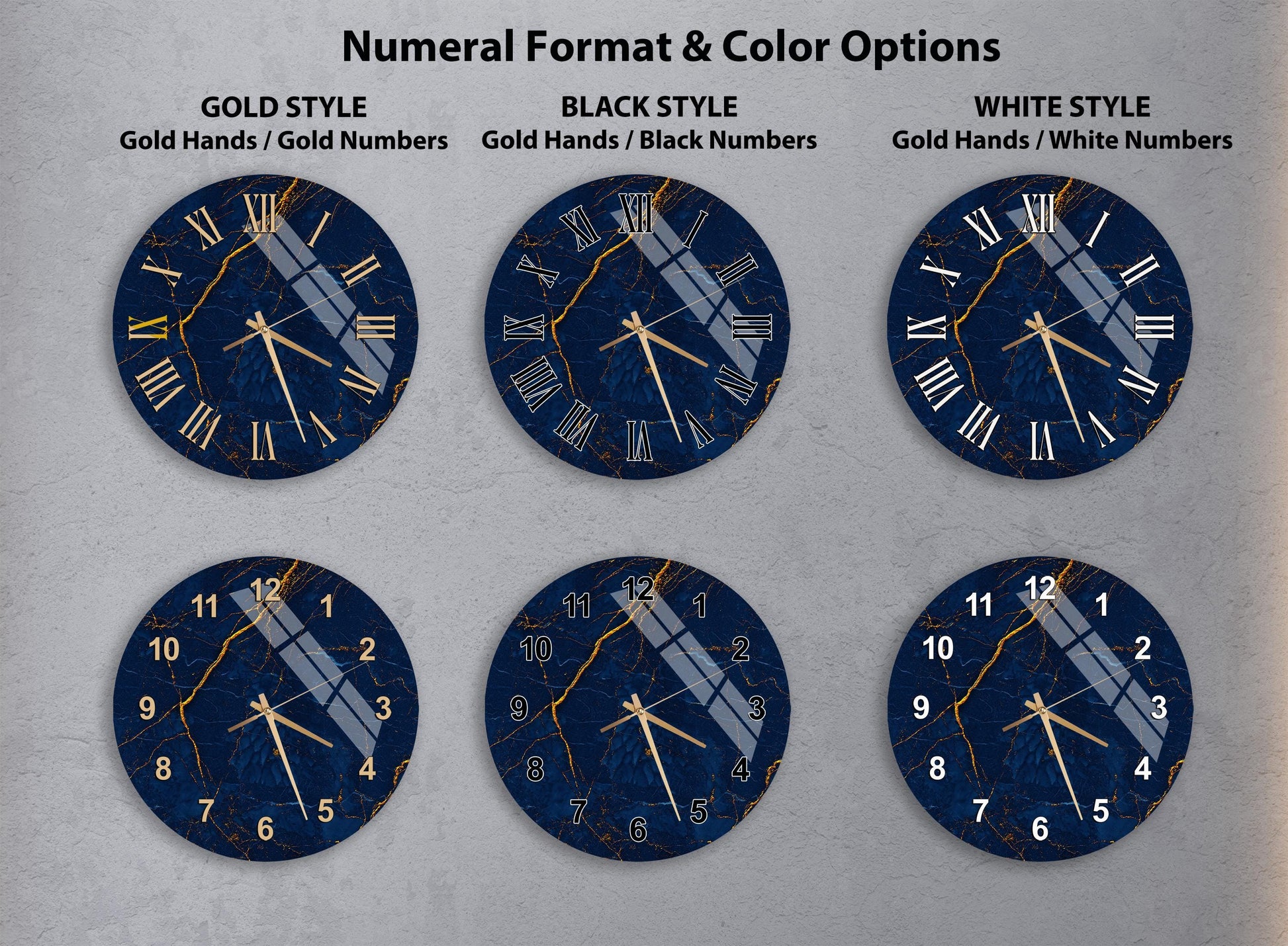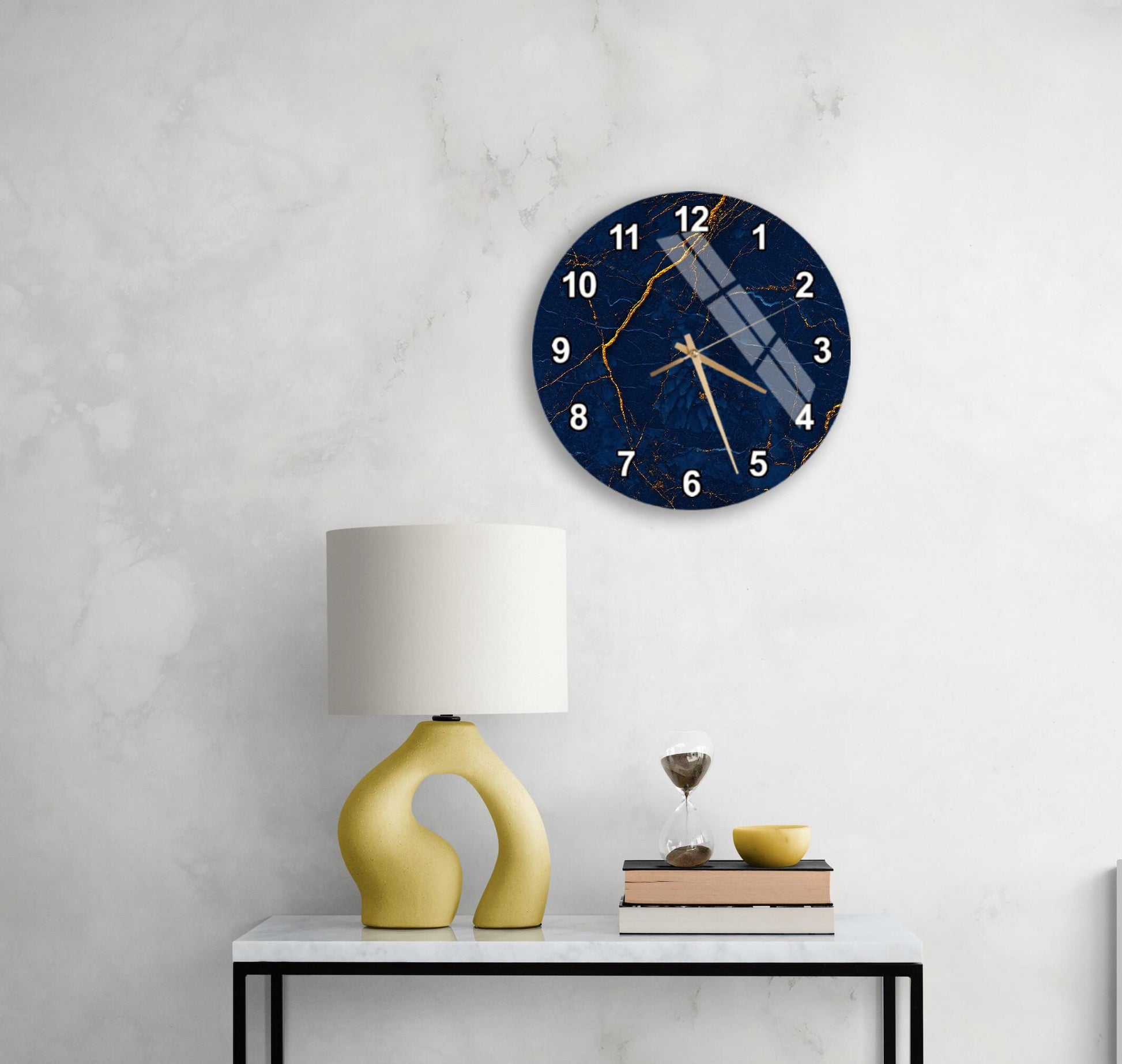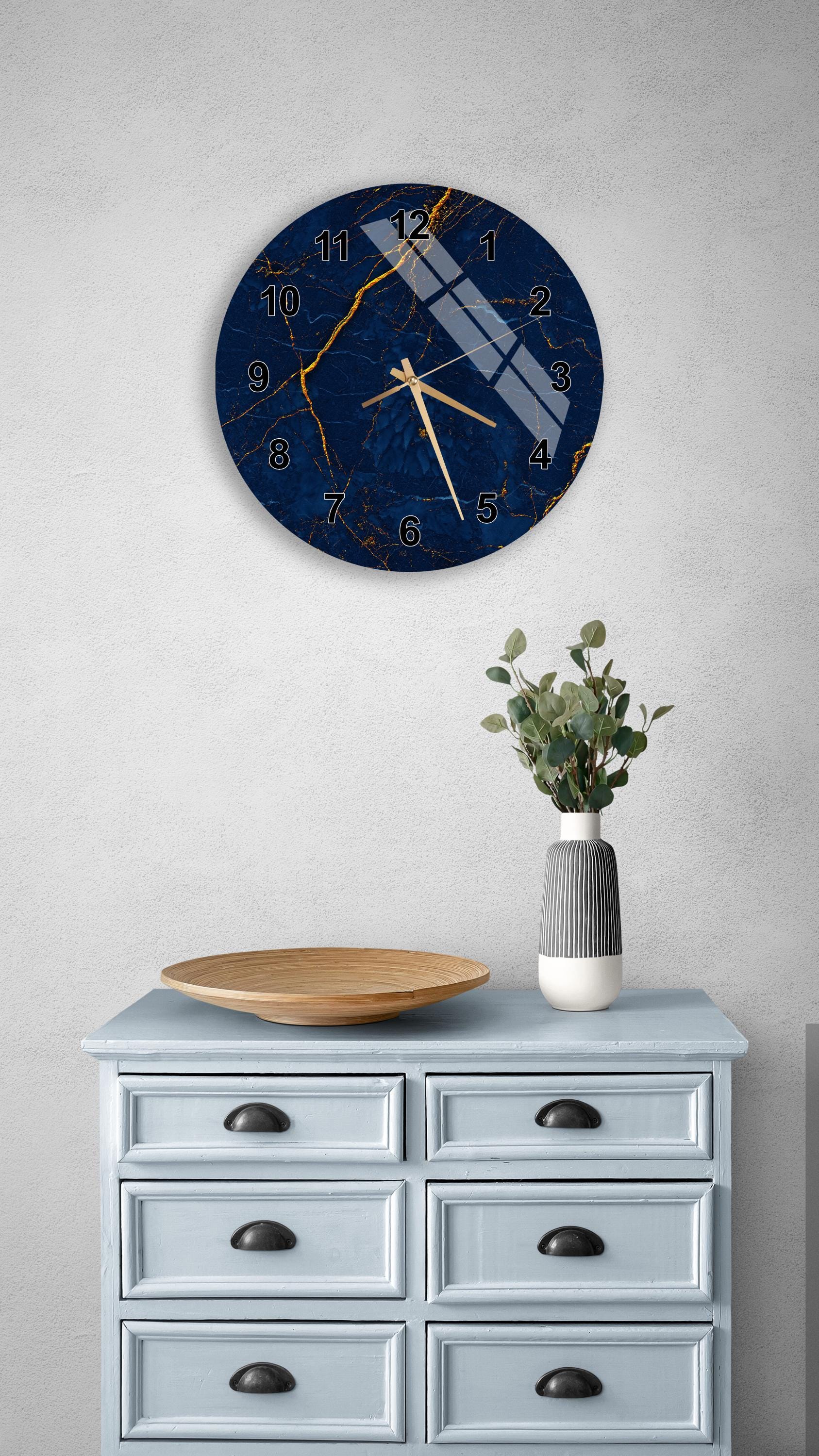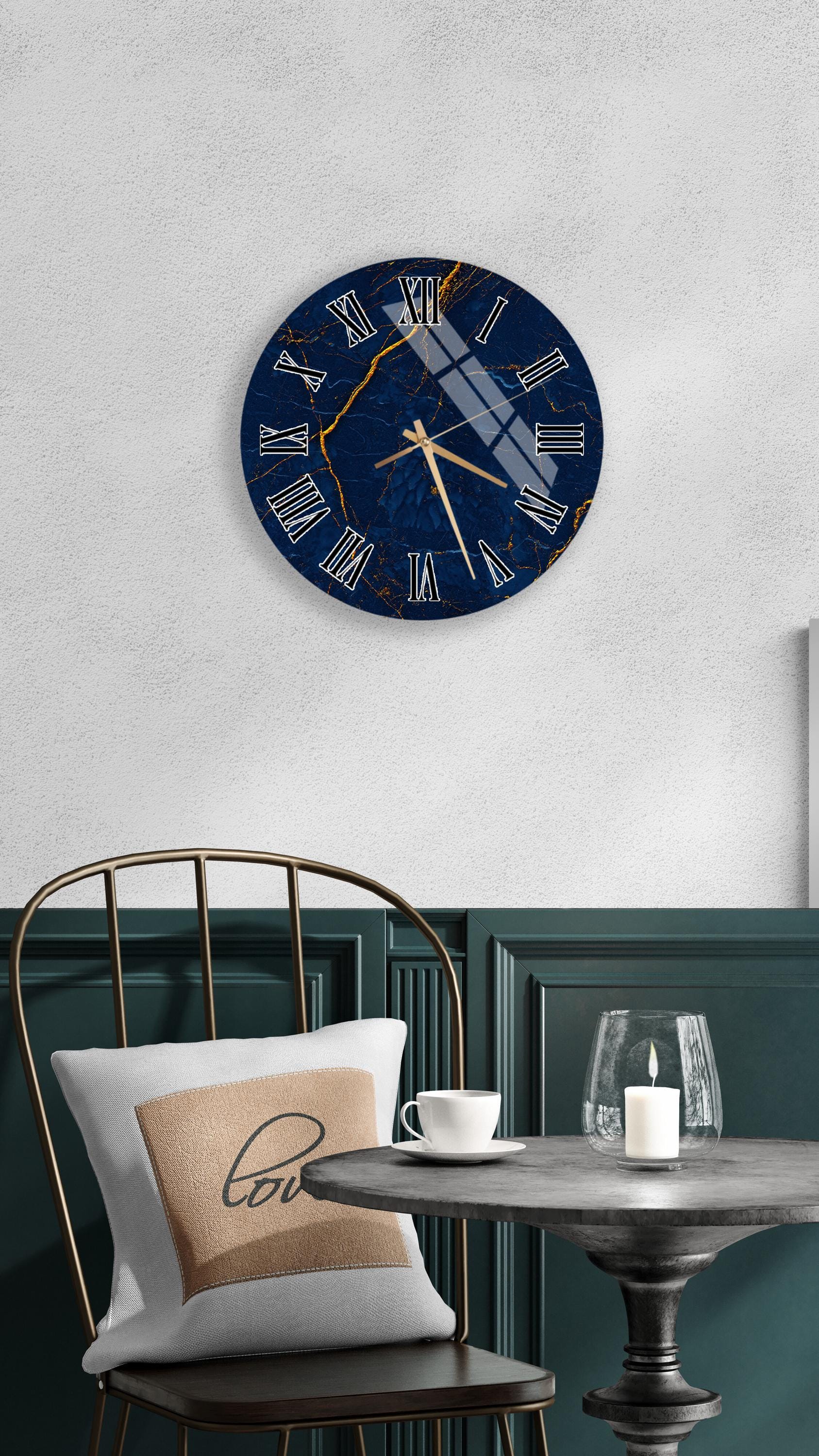 Elevate your interior styling with this stunning Navy Blue Marble Wall Clock, designed to be the perfect blend of functionality and modern art. Crafted from high-quality Tempered Glass, this durable timepiece features elegant gold veins and classic Roman numerals that add an immediate touch of luxury to any empty wall. Whether you are looking to upgrade your living room decor or searching for a unique housewarming gift, this silent mechanism clock offers a sophisticated focal point that effortlessly complements contemporary styles while keeping perfect time for years to come.