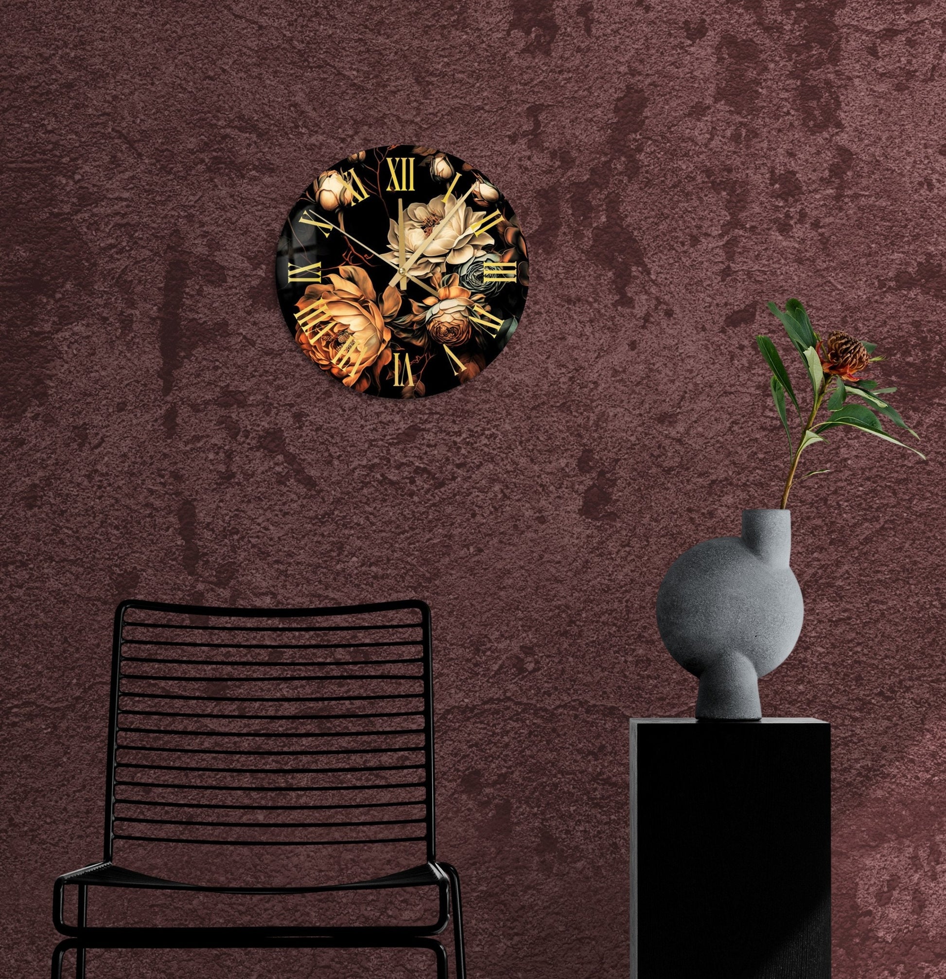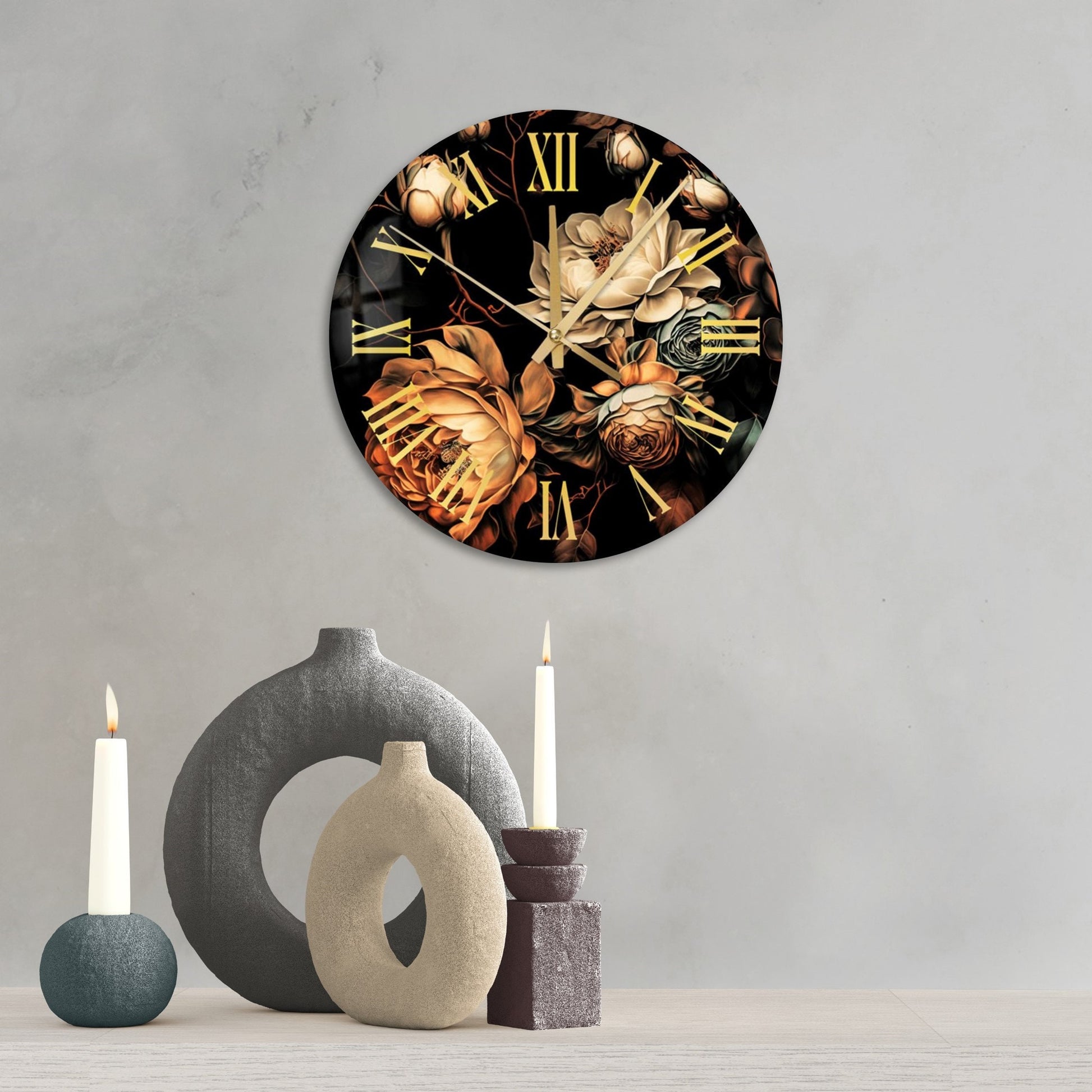 We offer modern tempered glass wall clock art with several themes such as nature, floral and abstract. All of our glass wall clocks are suitable for living rooms, bedrooms, kitchens also for offices and other commercial locations. All of our arts are framed, and ready to hang with metal hangers.