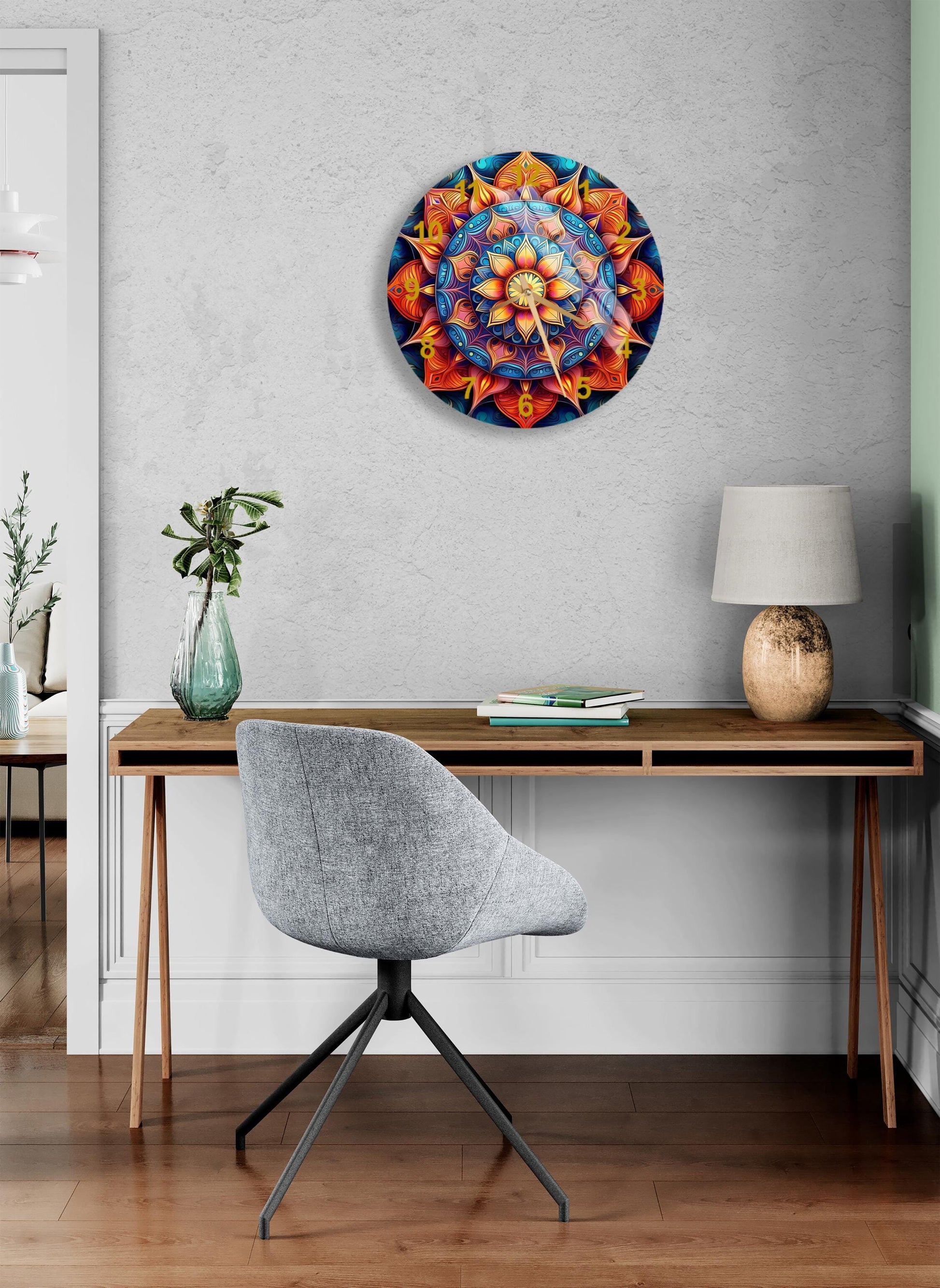 Elevate your decor with our Glass Wall Clock and experience the perfect combination of aesthetics and functionality. Embrace the elegance of tempered glass, appreciate the silence of its mechanism, and make timekeeping a pleasure in your daily life. Add it to your cart now and transform your space with this stunning timepiece!
